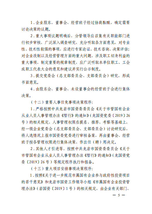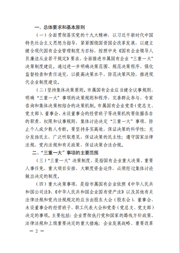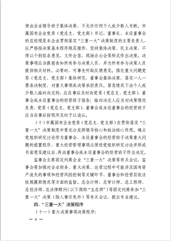 關(guān)于進一步規(guī)范市屬國有企業(yè)貫徹落實“三重一大”決策制度實施意見(國資黨委[2020]21號)